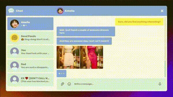 Naughty Chat is a text-based chat simulator in which you help a girl named Amelia with her master's thesis. Luckily for her, you are just the right person to help her.
